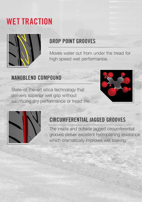 The nanoBLEND compound provides optimum balance of superior wet grip performance, high fuel efficiency and exceptional wear performance.