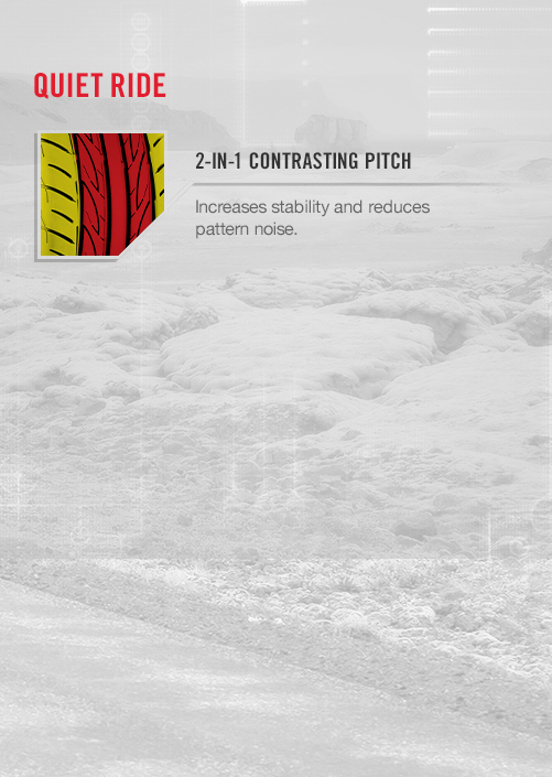 The non-penetrating Lug Groove pattern suppresses heel and toe friction as well as the popping noise for a quieter ride.