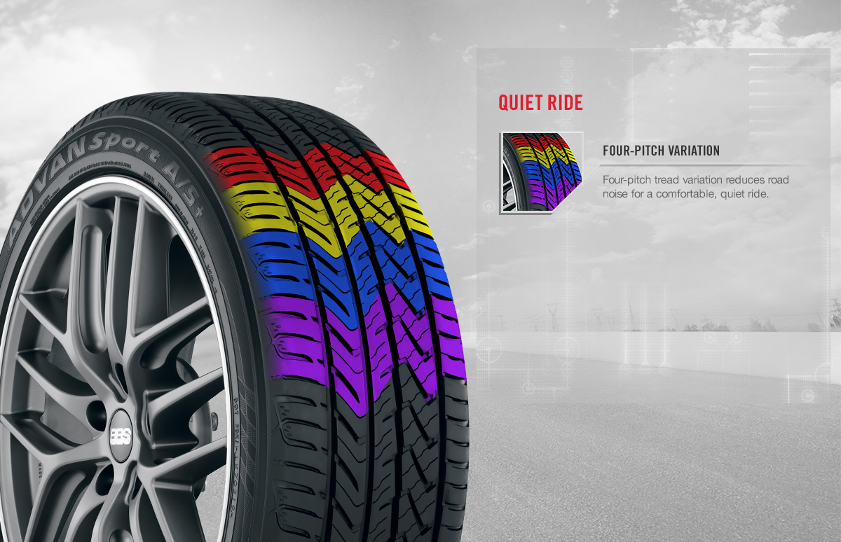 Four-pitch tread variation reduces road noise for a