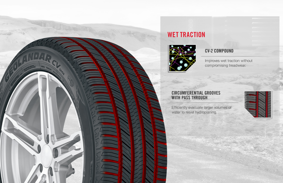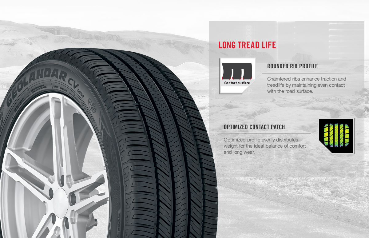 Featuring exceptional wet and all-season grip, long-lasting tread life, and backed by an impressive 100,000 km Limited Treadwear Warranty, the GEOLANDAR CV G058 allows you to drive with confidence, no matter the weather.