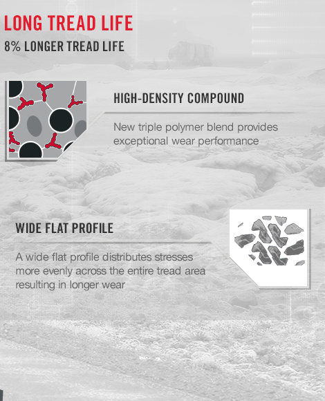 A new triple polymer compound and a wide flat profile combine for exceptional wear performance.