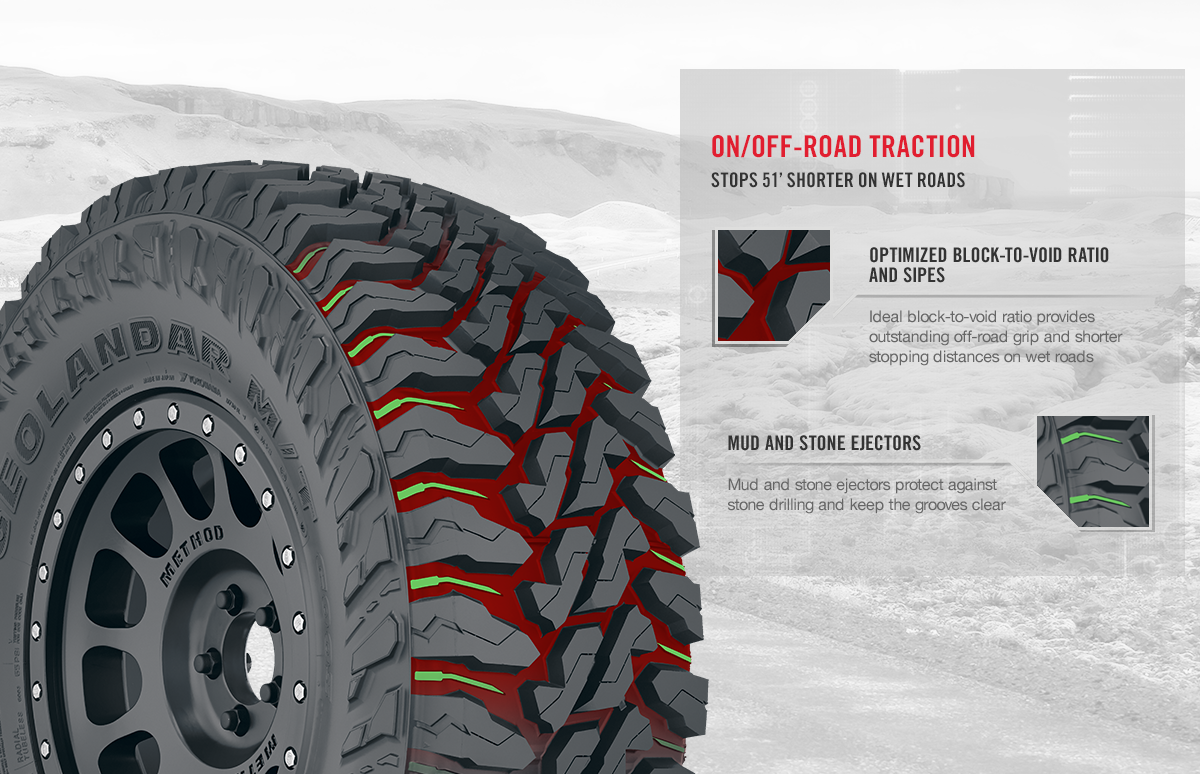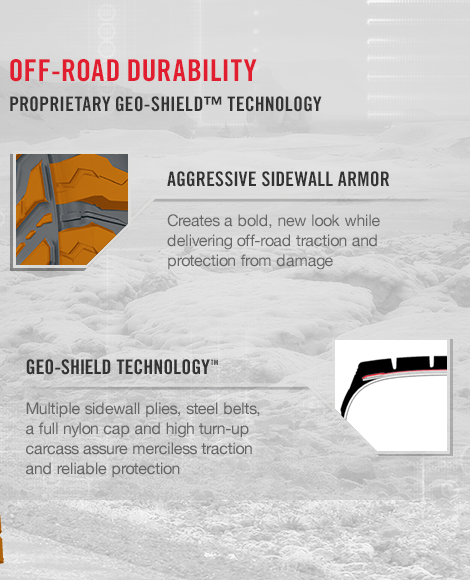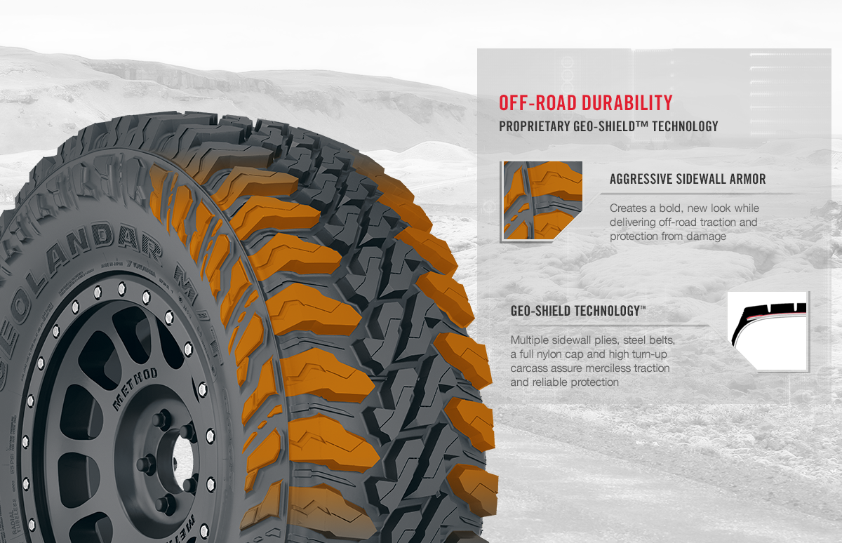 There’s no stopping Yokohama’s all-new, off-road warrior, the GEOLANDAR M/T G003. With aggressive sidewall armor, merciless traction and long-lasting tread, crushing performance is always at your feet—dominate the trails like never before.
