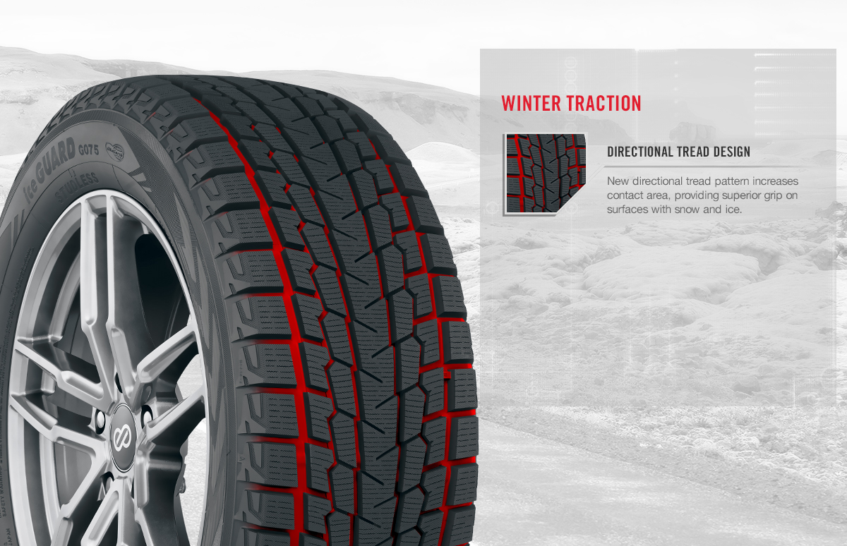 The new iceGUARD G075 crossover and SUV winter tire is the latest addition to Yokohama’s iceGUARD family line. This winter tire is designed to deliver exceptional performance on all rough and tough Canadian winter roads. The combination of ice and snow traction, low rolling resistance, and resistance to wear, which makes for a quieter ride. The G075 is equipped with all new directional tread design, high density compound, 3-D triple sipes and with all new low-heat generating under tread, drivers will be ready for any condition winter brings.